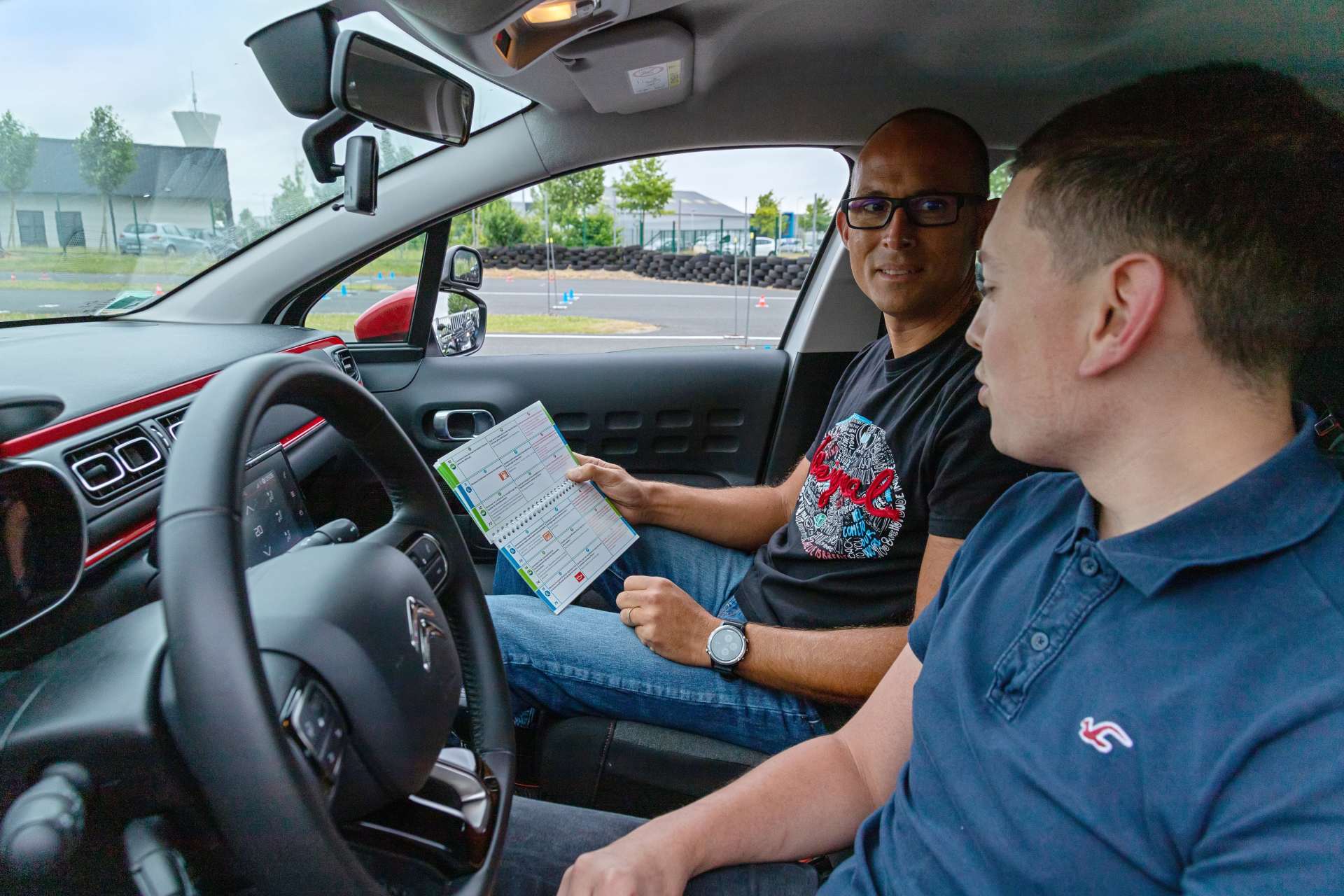 Par groupe de trois élèves, chacun des trois participants conduit à tour de rôle avec le formateur. Une première évaluation est faite avec une auto-critique et une synthèse collective.